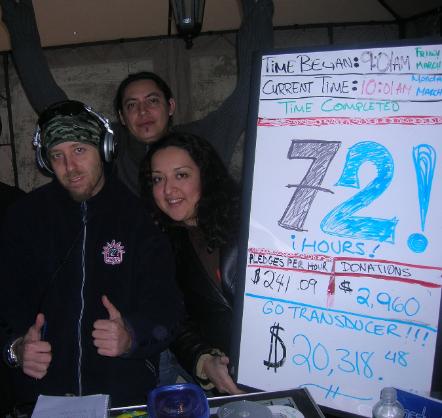 ON BEHALF OF THE VOLUNTEER STAFF AND THE PATIENT POPULATION WE SERVE, RDF WOULD LIKE TO THANK ALL THOSE WHO PARTICIPATED IN THE GREAT CHARITY SPIN. THE EVENT FEATURED WINE TASTINGS, ART SHOWS, BELLY DANCING, A BBQ, MORNING EXCERCISE SESSIONS, SALSA LESSONS, A ROCK PAPER SCISSORS TOURNAMENT, POETRY READINGS, FUN GAMES,"CRAPPY HOUR" AND OF COURSE, LOTS OF GREAT MUSIC! DJ DAVID ANTONIO, THE "MECHATRANSDUCER", WAS ABLE TO DJ FOR 72 HOURS STRAIGHT, RAISING AWARENESS OF CANCER AMONG YOUNG PEOPLE, AND RAISING FUNDS FOR RDF, ST JUDE CHILDREN'S HOSPITAL, AND THE LEUKEMIA AND LYMPHOMA SOCIETY. IN ADDITION HE SET THE UNOFFICIAL RECORD FOR THE LONGEST DJ SET IN NYC HISTORY. WE ARE ALL PROUD OF THIS EFFORT. IF YOU MADE A PLEDGE, YOU CAN HONOR IT BY MAILING A CHECK MADE OUT TO THE ROBERT DILIBERO FOUNDATION AT 202-11 36TH AVENUE BAYSIDE NY 11361. YOUR CHECK SHOULD REFLECT THE AMOUNT YOU PLEDGED TIMES (X) 72 (WHICH WAS THE NUMBER OF DJ HOURS) |