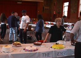 (Above) Donations table at one of RDF's annual Fashion Shows. (Below) Volunteers working at one of RDF's bake/craft sales |
